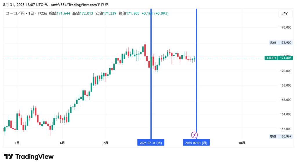 | 7日(木) | 171.790 | 171.276 | 172.167 | 171.611 |