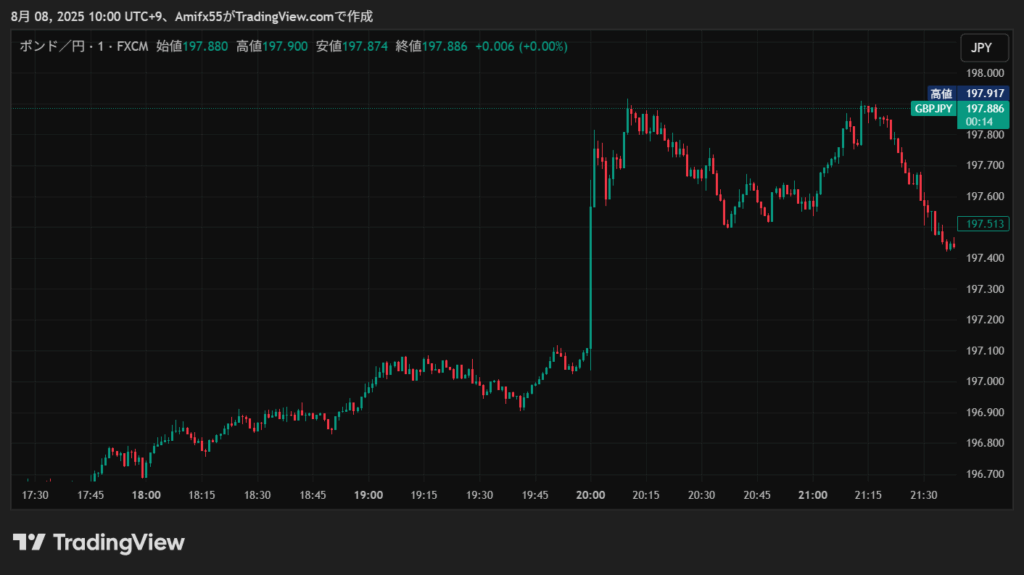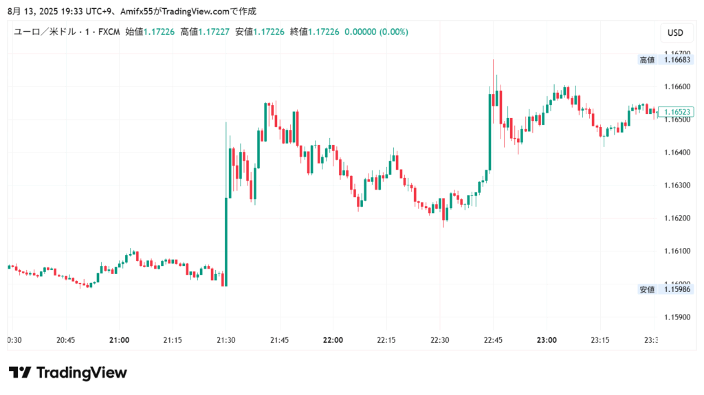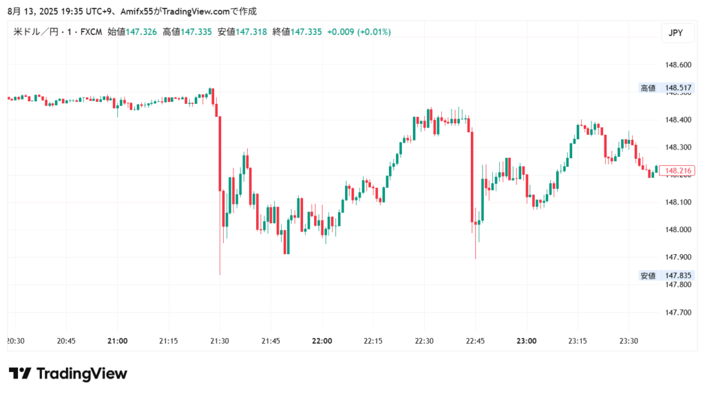 しかし21:30のPPIが大きく上振れ。失業保険も鈍化で全戻し→上抜け