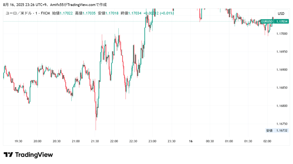 | 15日(金) | 1.16463 | 1.16463 | 1.17151 | 1.17060 |