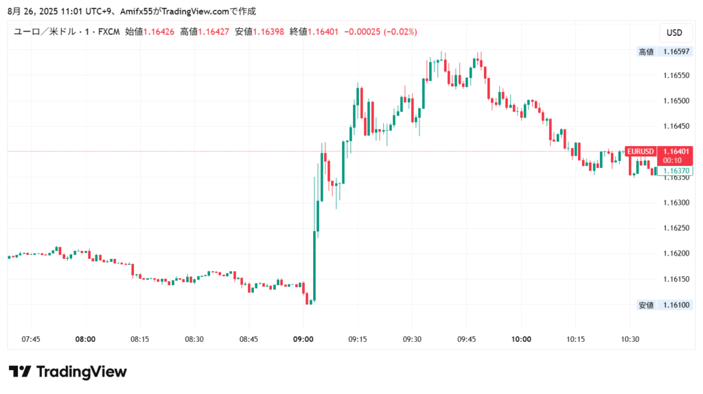 | 8日(金) | 1.16631 | 1.16287 | 1.16792 | 1,16420 |