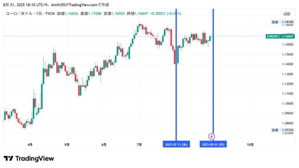 | 7日(木) | 1.16574 | 1.16109 | 1.16986 | 1.16631 |