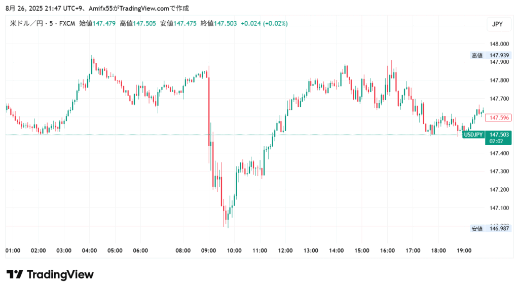 | 26日(火) | 147.776 | 146.988 | 147.911 | 147.389 |
