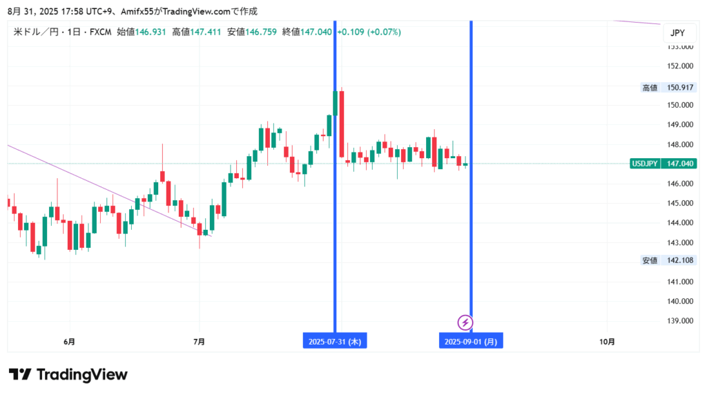 | 7日(木) | 147.349 | 146.690 | 147.710 | 147.121 |