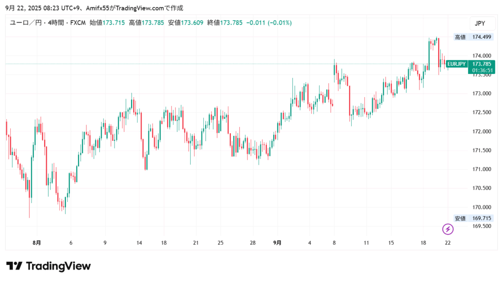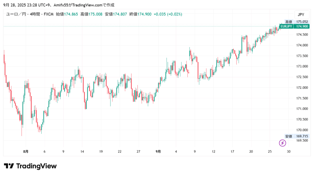 チャートだけ見ればドル円は長かったレンジを抜けて8月1日の高値に向かっていくのか?という感じだし、ユーロ円も上り調子でまだ上げの余地がありそうには感じます。