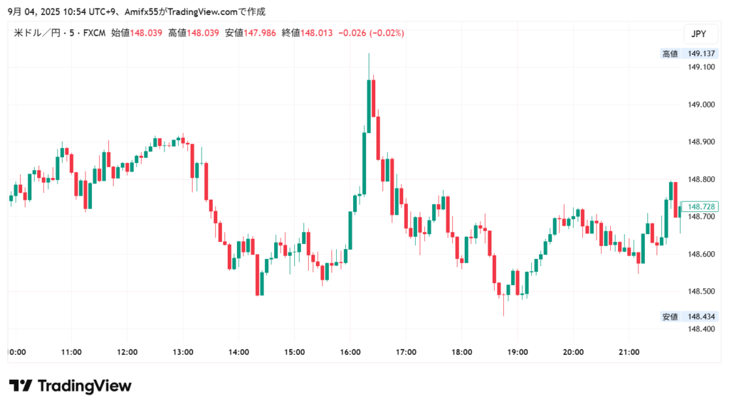 昨日は149円一時上抜けしたと思いきや、すごい勢い勢いで戻る謎相場でした。