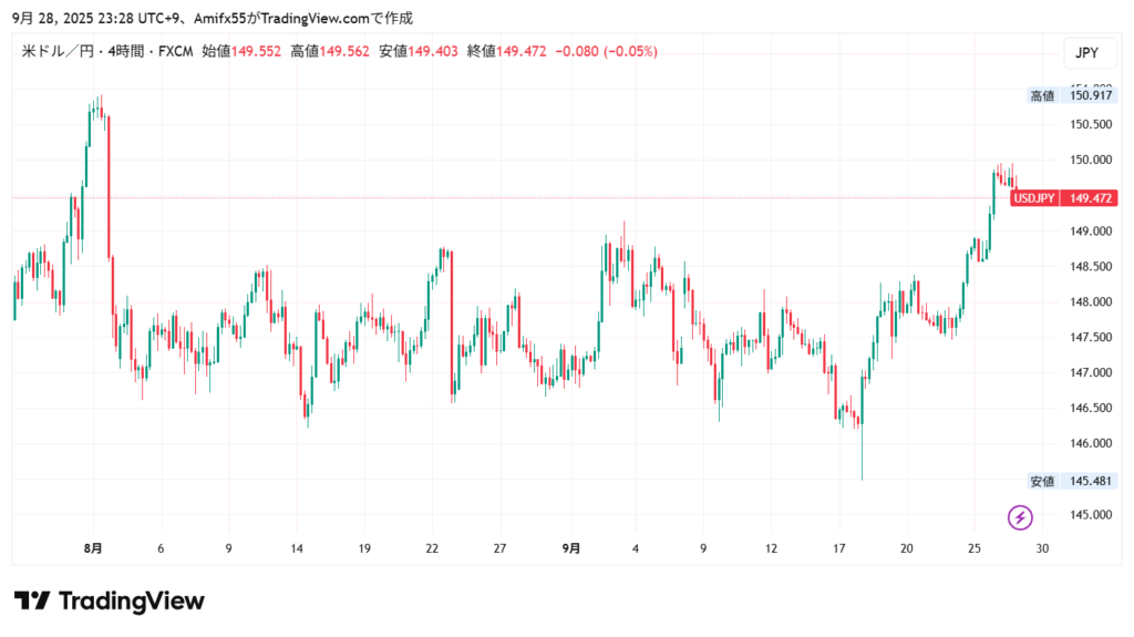 結局9月も147円台に戻って終わりましたねえ。